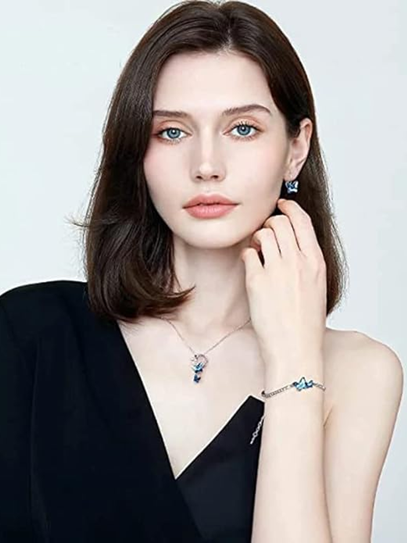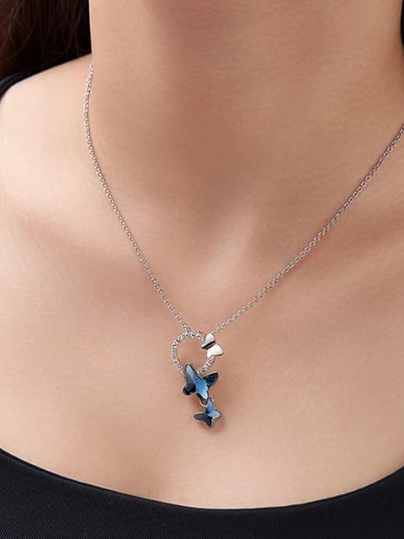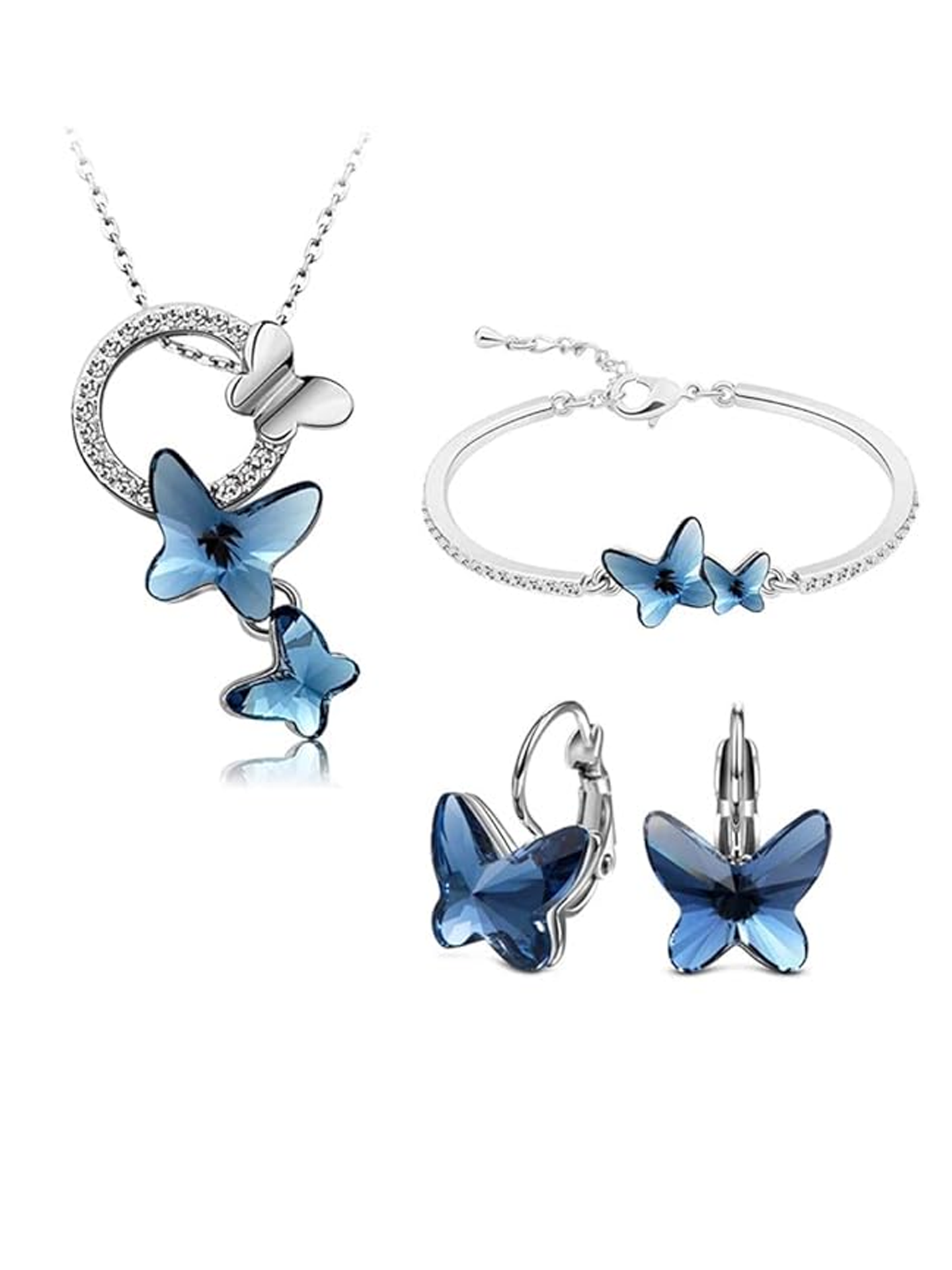 Platinum Plated Crystal Butterfly Earrings Chain Pendant Necklace Combo Jewellery Set for Women and Girls